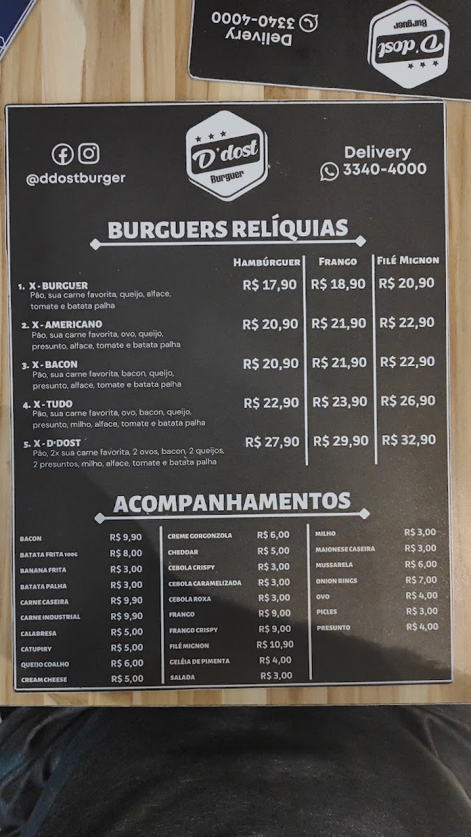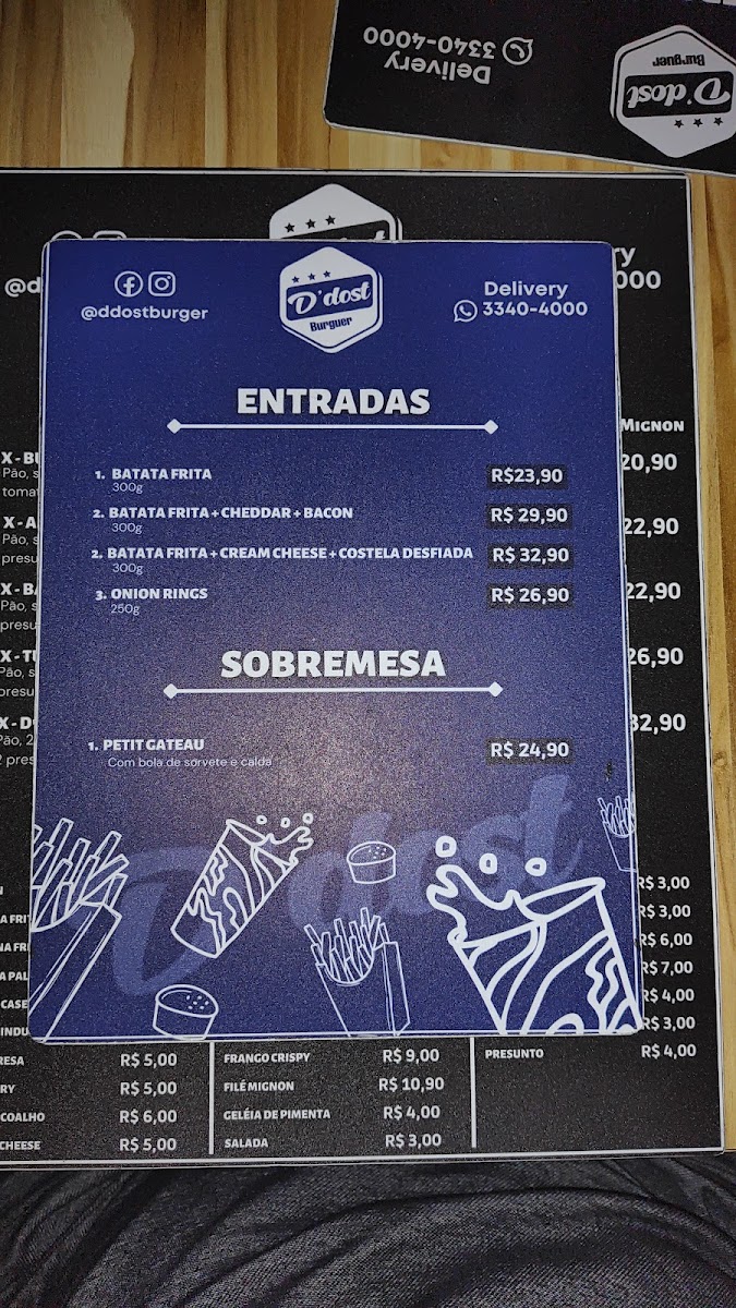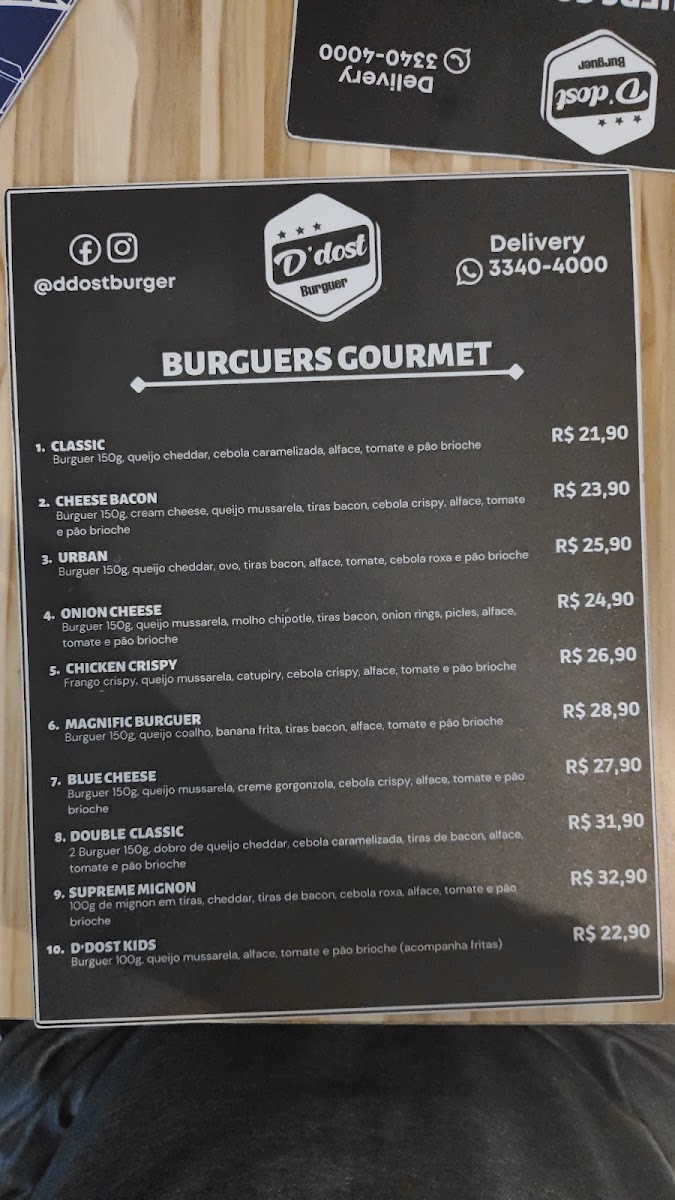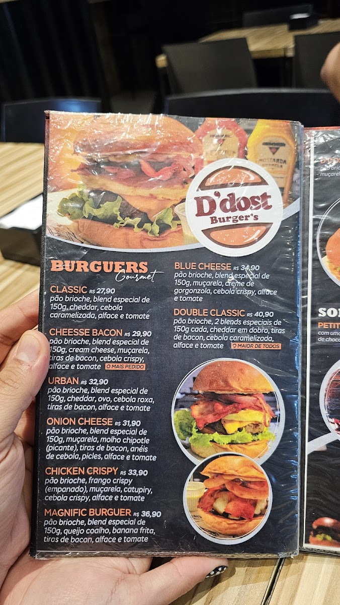 Overall, D'dost Burger at Praia das Gaivotas in Vila Velha, ES, presents a well-rounded menu with something for everyone-from gourmet options to kid-friendly meals and tasty chicken burgers. Whether you’re dining in or ordering delivery, the restaurant offers a delightful experience for all types of burger lovers.